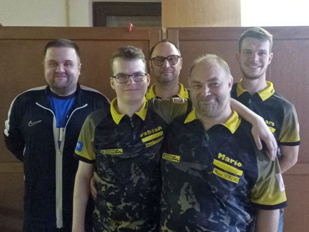 Das Siegerteam der Radlergesichter setzte sich im großen Finale gegen die Thekencrew (zwei Teams der Seenbachdarter) mit 3:1 in Spielen durch. Die 5 Akteure des Teams von links nach rechts: Schlemoun Kücükkaplan, Benedikt Vogeltanz, Dominic Keller, Carsten Hensel und Christian Vogelwiesche.